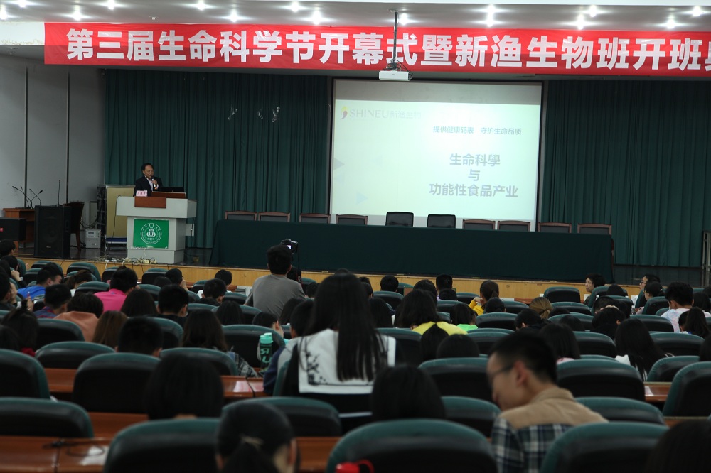 會(huì)議中,新漁生物董事長(zhǎng)為川農(nóng)大生命科學(xué)學(xué)院學(xué)生作專(zhuān)題報(bào)告《生命科學(xué)與功能性食品產(chǎn)業(yè)》
