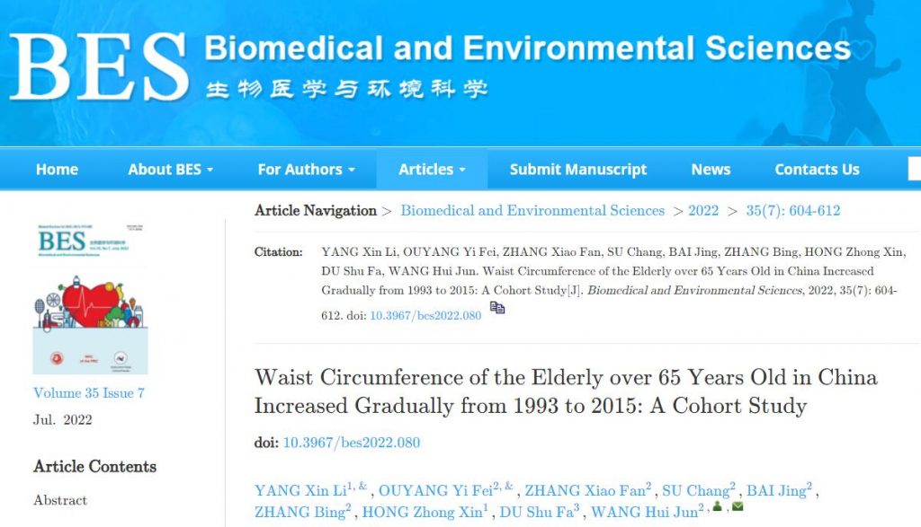近期,首都醫(yī)科大學(xué)附屬北京友誼醫(yī)院、中國(guó)疾病預(yù)防控制中心營(yíng)養(yǎng)與健康研究所、美國(guó)北卡羅來(lái)納大學(xué)教堂山分校營(yíng)養(yǎng)系和卡羅萊納人口中心聯(lián)合完成的《中國(guó)健康和營(yíng)養(yǎng)調(diào)查》顯示,從1993年到2015年,我國(guó)65歲以上老人的平均腰圍從78厘米增加到86厘米,增長(zhǎng)了8厘米。該研究發(fā)表在《生物醫(yī)學(xué)環(huán)境科學(xué)》雜志上。